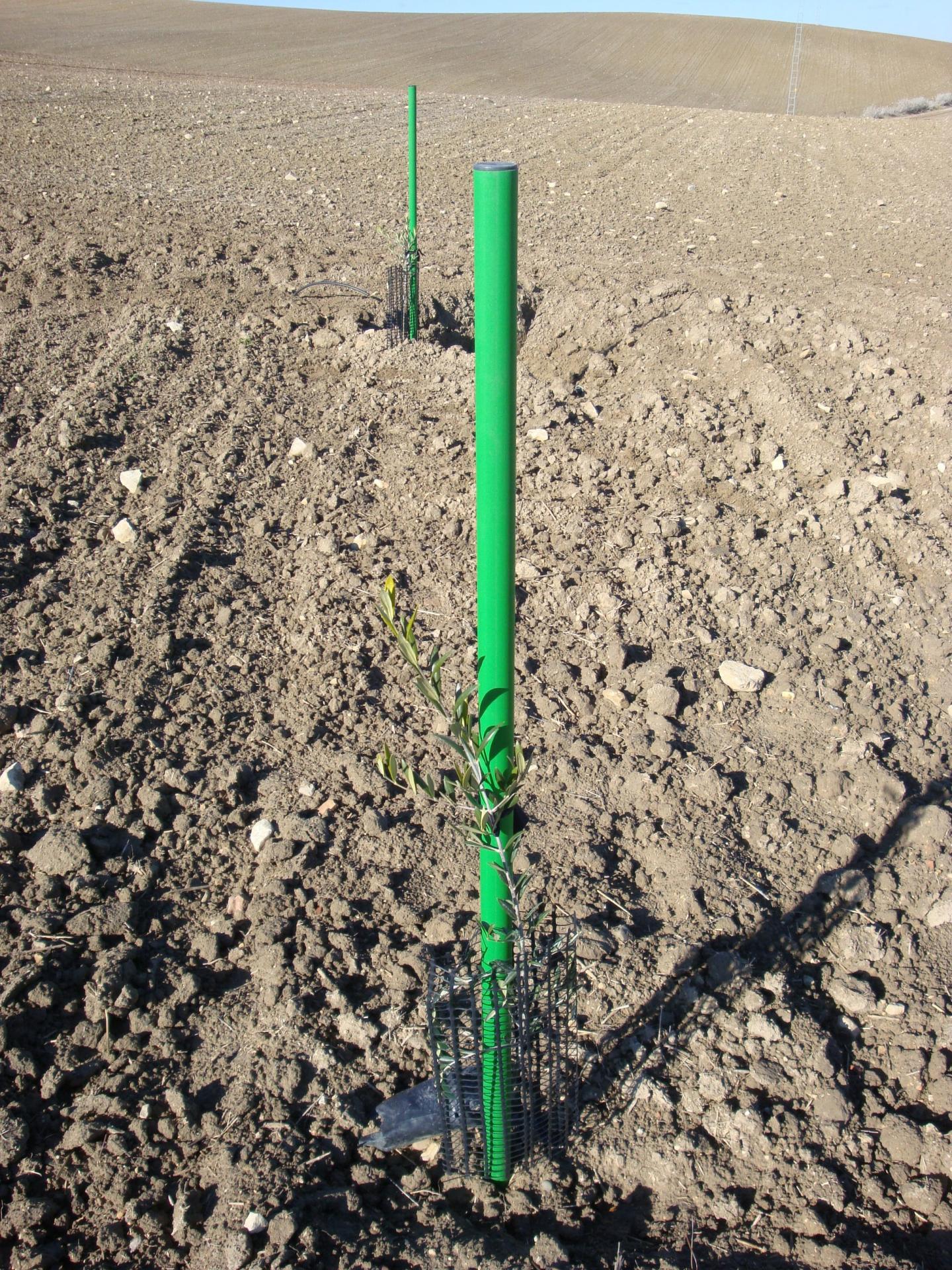 Tutor sintético verde (con punta y tapón) para olivar, almendros, pistacheros y tropicales. Diámetro 4 cm x 175 cm de altura.